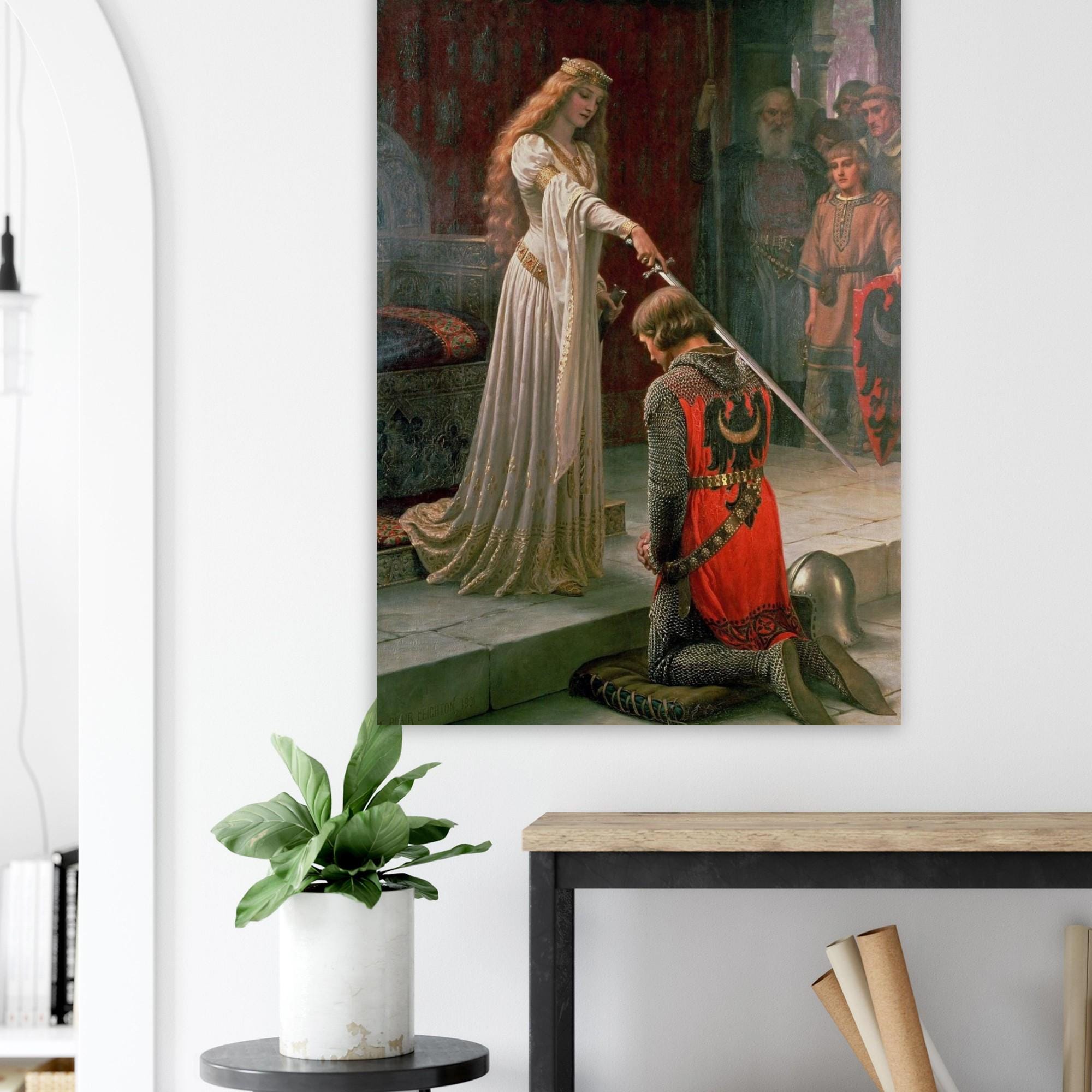 The Accolade by E.B. Leighton | Victorian Knight Painting | Dark Academia Wall Art | Medieval Chivalry Print | Pre-Raphaelite Style Decor