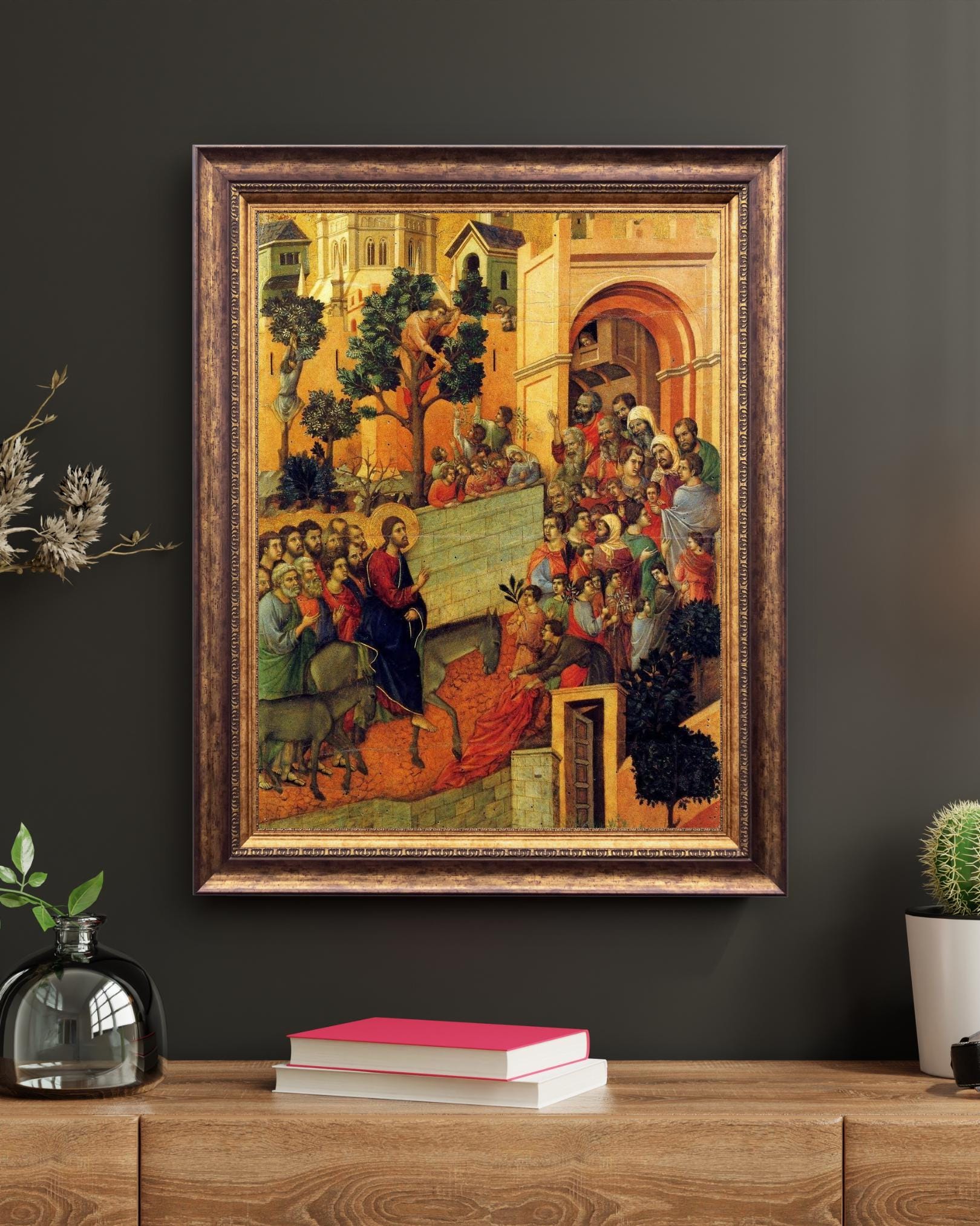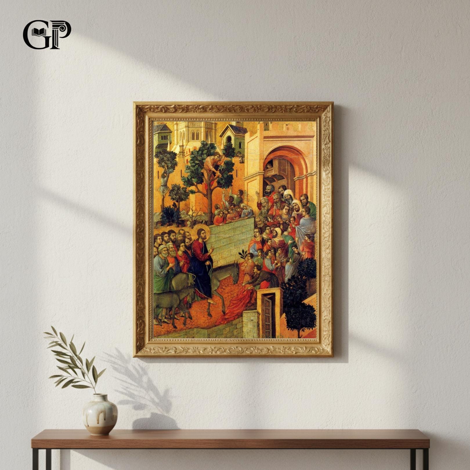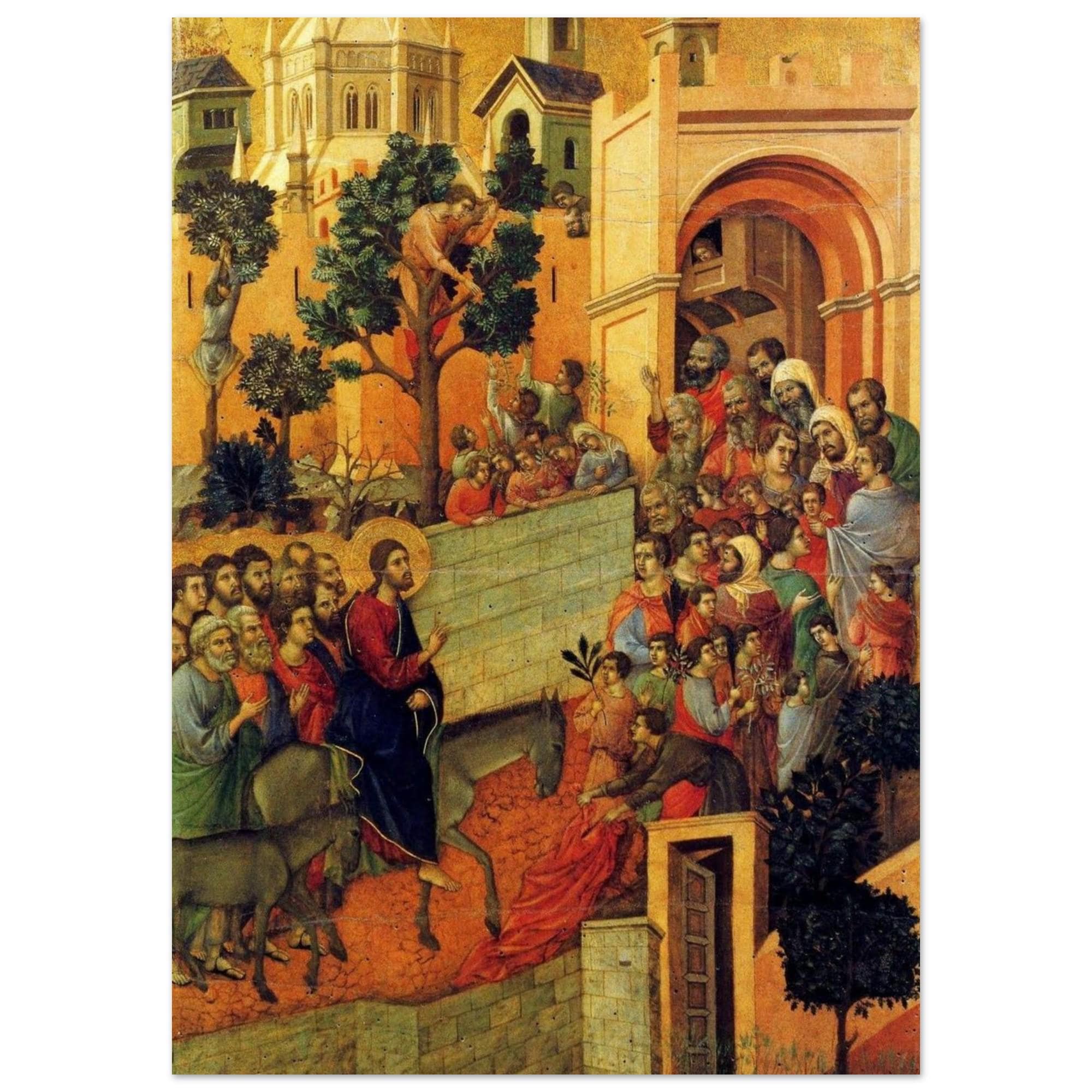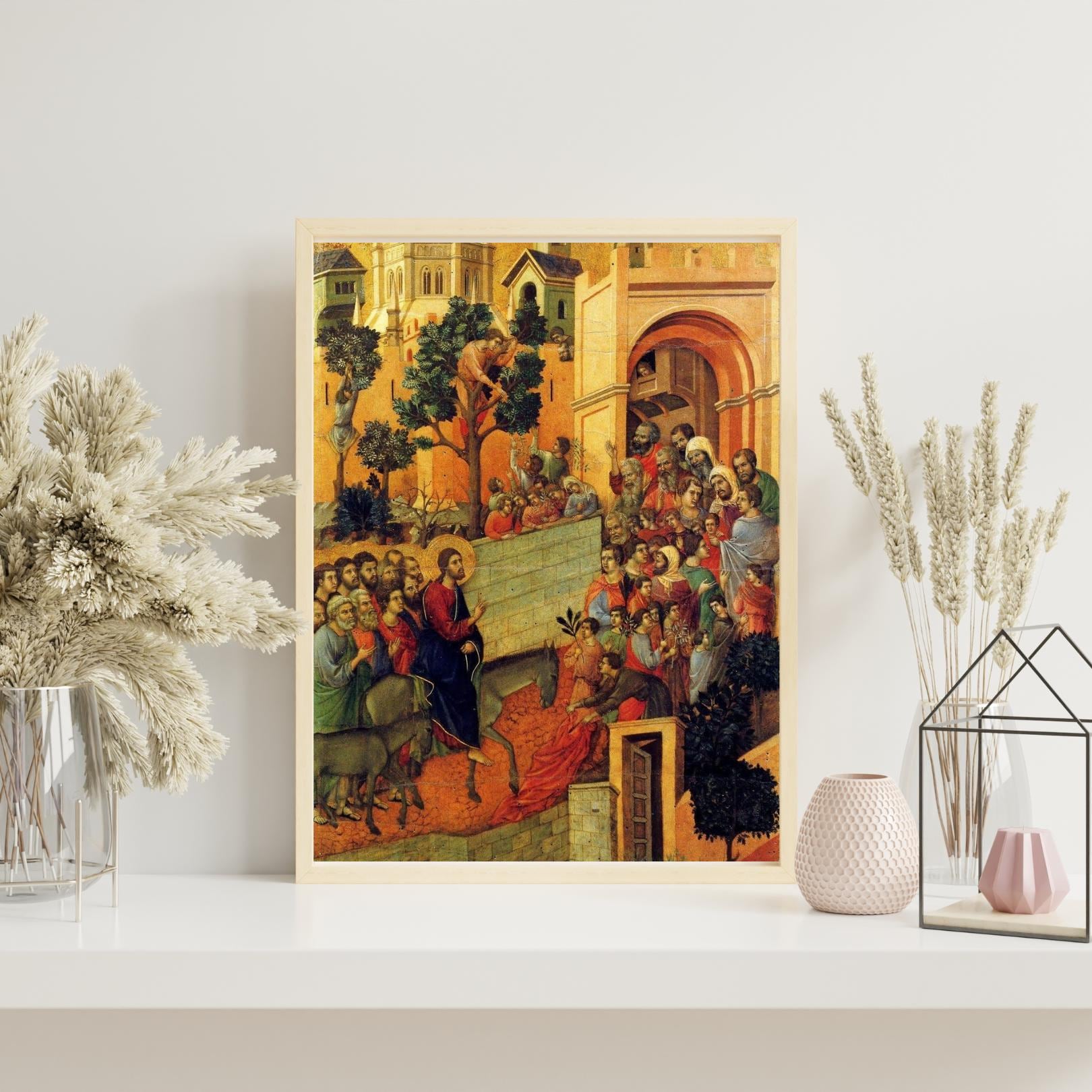 Medieval Entry into Jerusalem Painting Print Ready to Hang, Early Italian Gothic Religious Wall Art Decor Gift