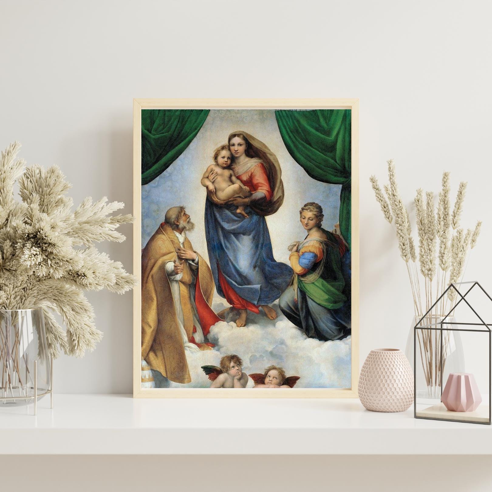 Raphael Sistine Madonna Print Ready to Hang, High Renaissance Masterpiece Religious Wall Art Gift