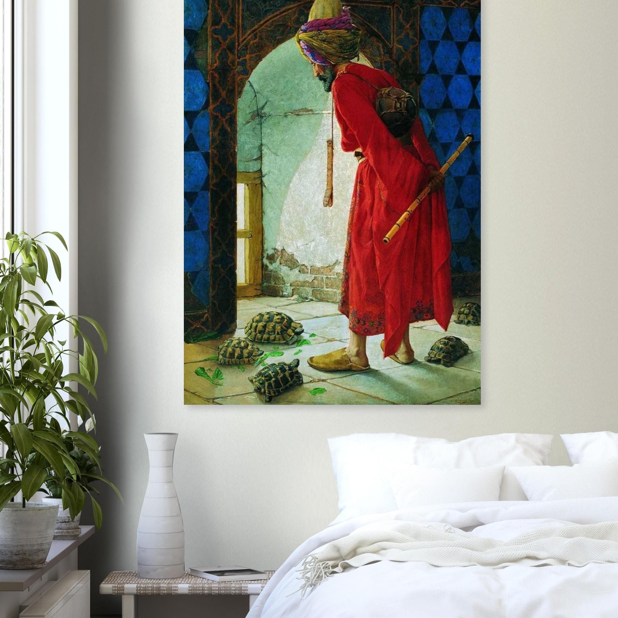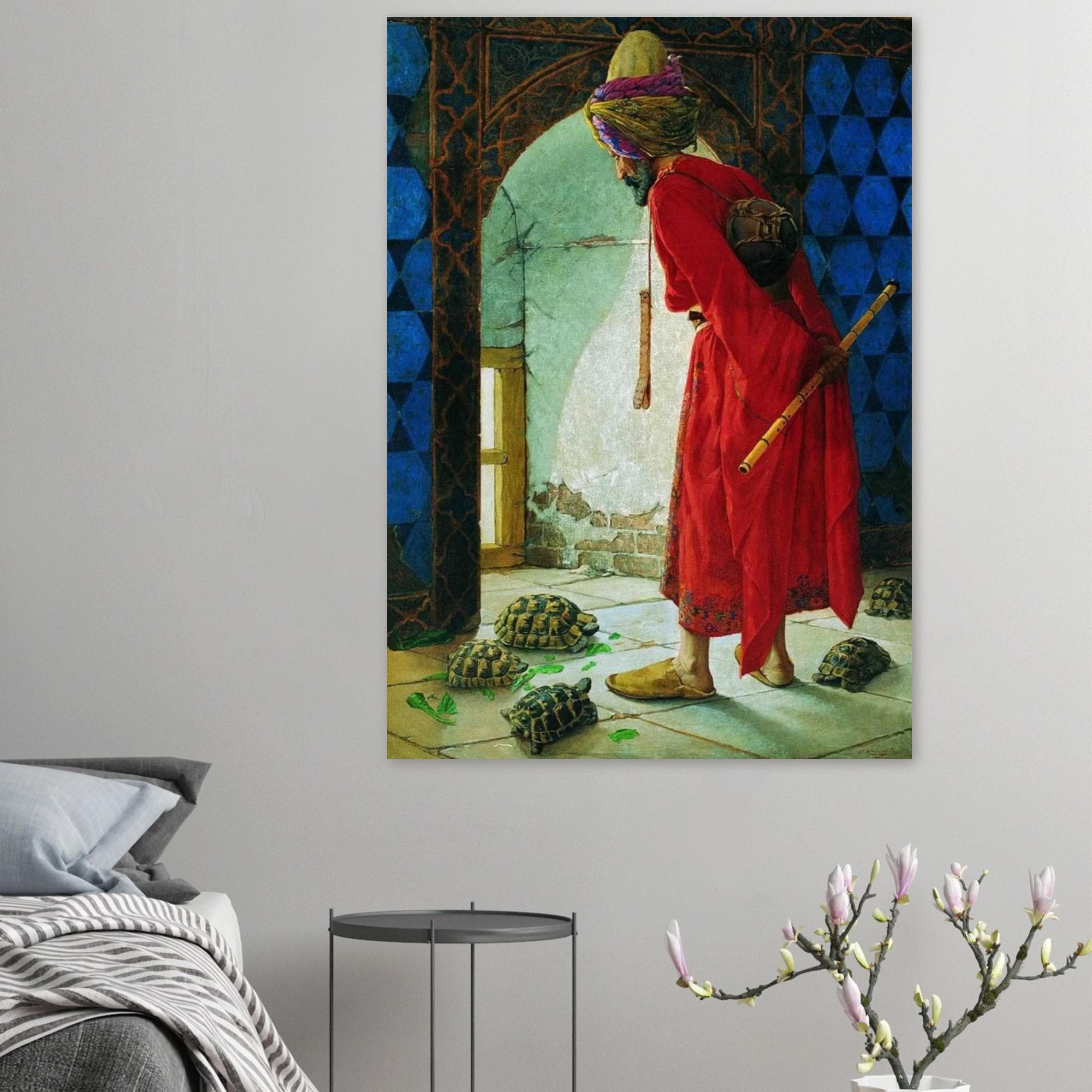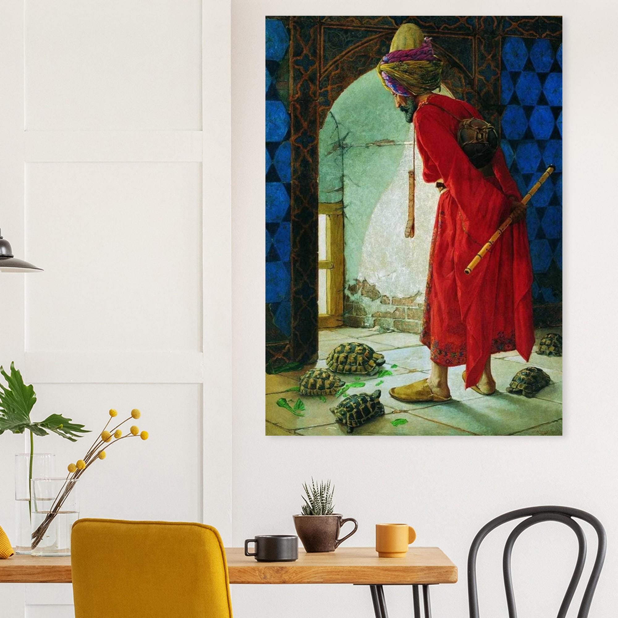 Push past common decor with this iconic Osman Hamdi Bey Tortoise Trainer Canvas Print. This highly significant and much-debated masterpiece of **Early 20th Century** Orientalist painting depicts a dervish figure patiently attempting to train a group of tortoises within a crumbling, ornate structure. Widely interpreted as a **satirical commentary** on the Ottoman Empire's struggle with reform and stagnation, this piece is perfect for those who appreciate symbolic art, history, and Orientalist beauty.