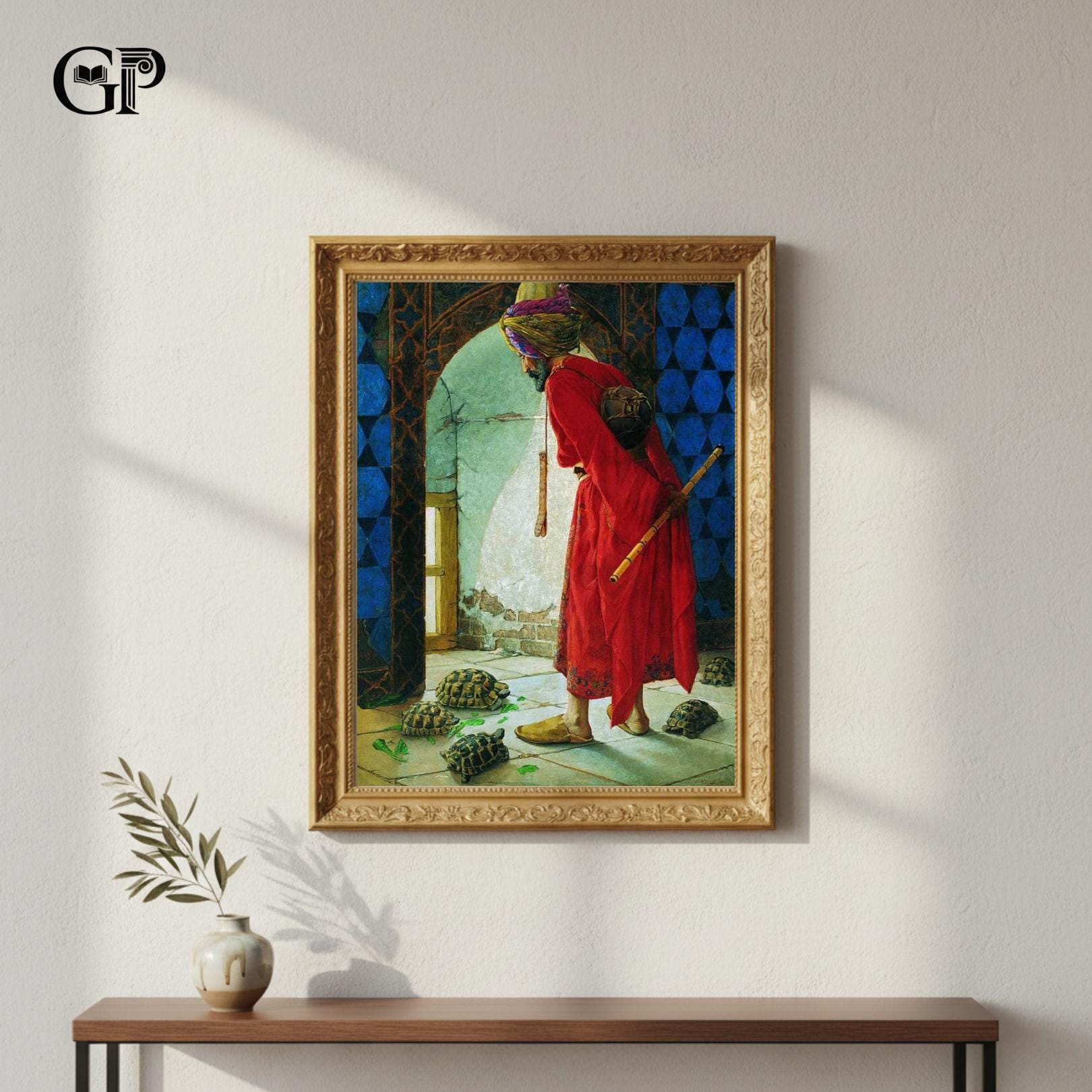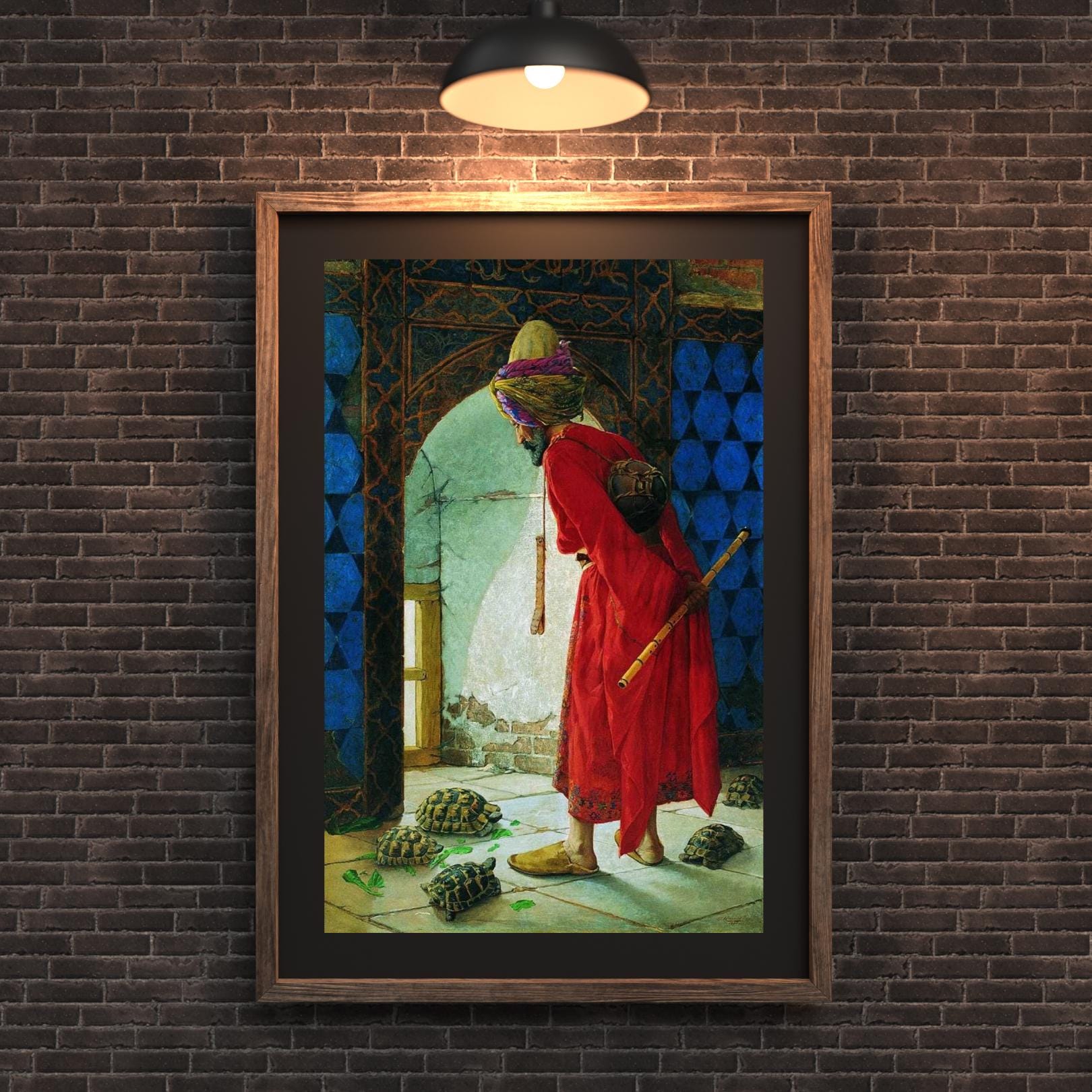Osman Hamdi Bey Tortoise Trainer Print Ready to Hang, Orientalist Masterpiece Wall Art Decor Gift