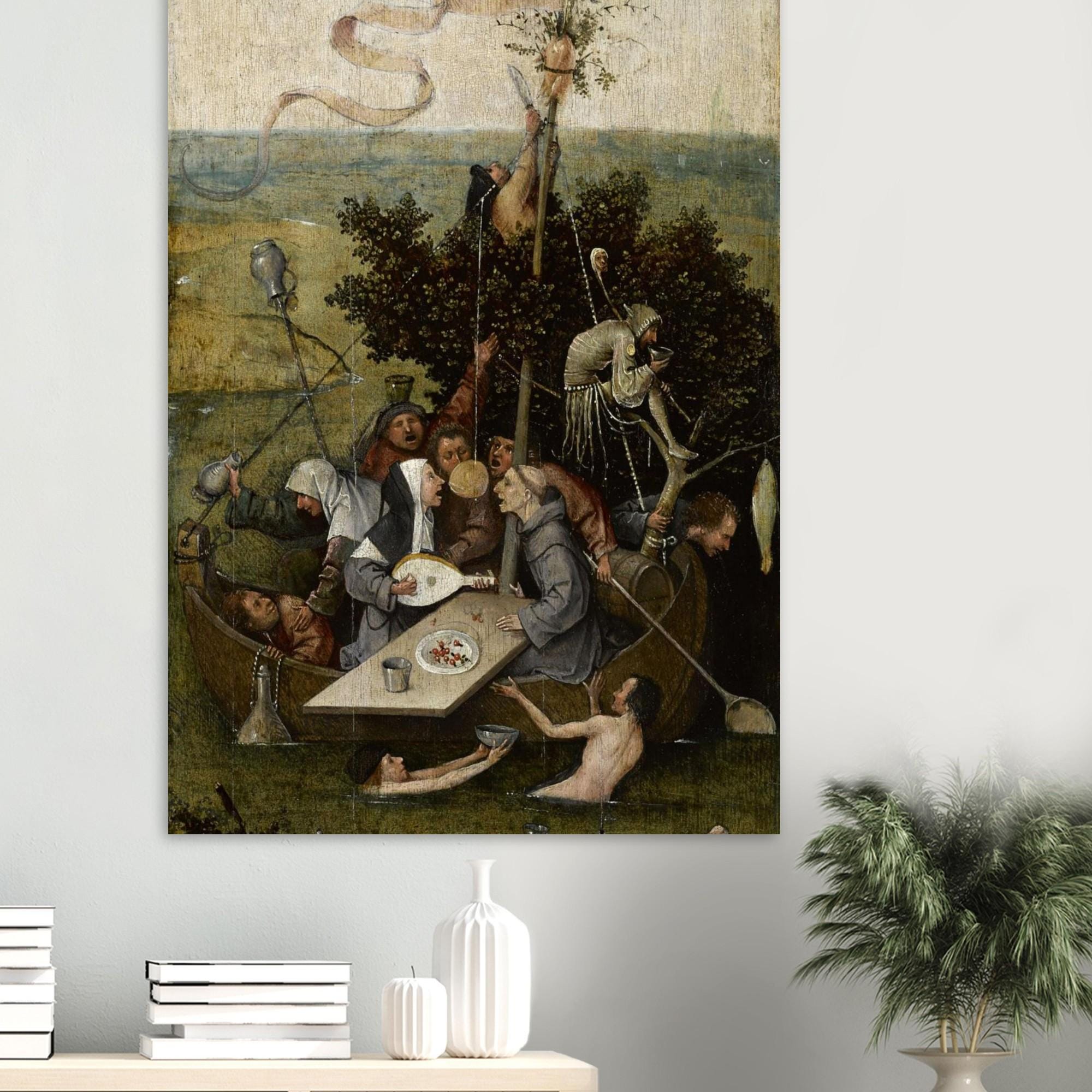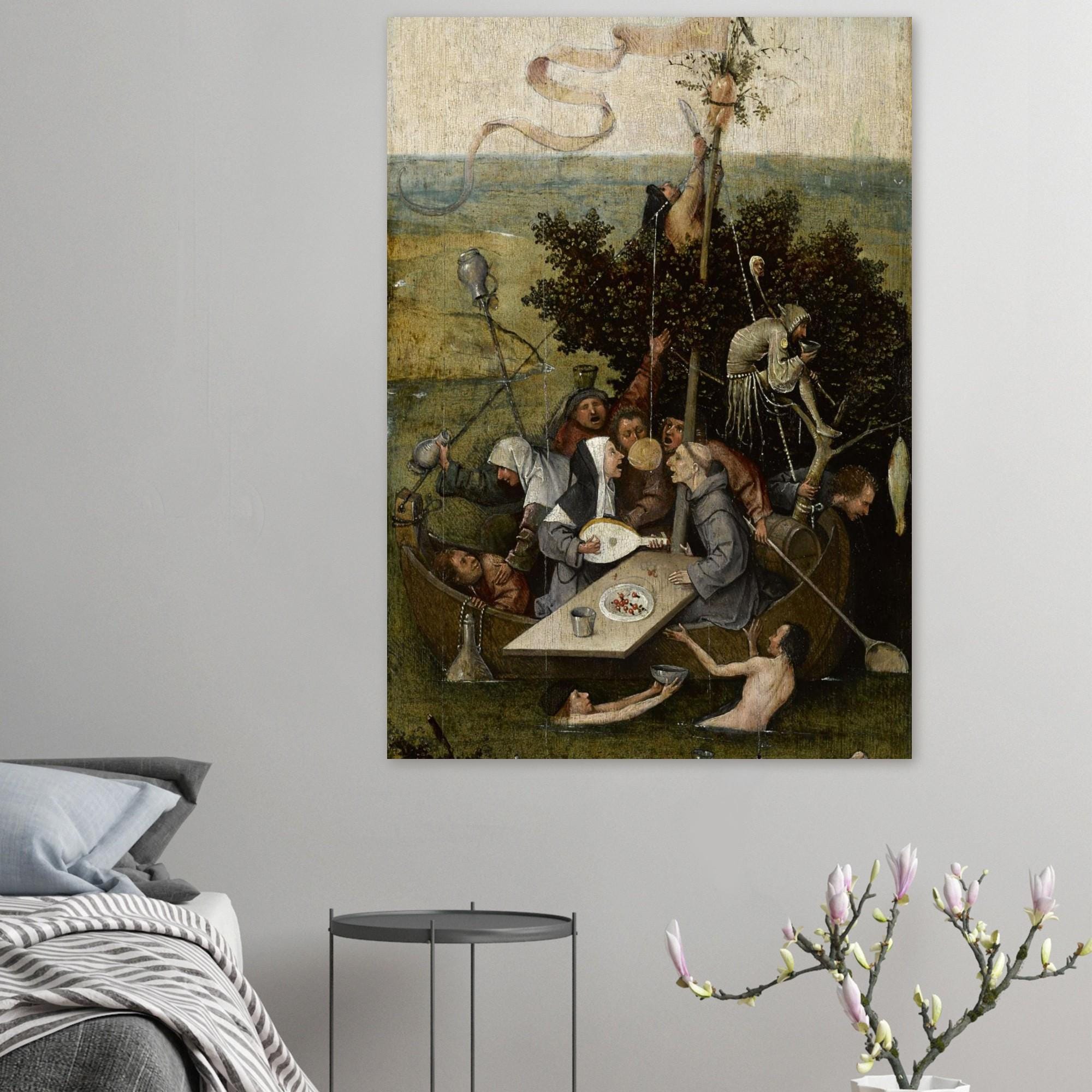 Push past common decor with this captivating Bosch Ship of Fools Canvas Print. This masterful allegory by **Hieronymus Bosch** depicts a grotesque and chaotic boat scene, symbolizing humanity's moral decay, gluttony, and folly. The detailed portrayal of monks, nuns, and commoners engaging in reckless merriment reflects the social and religious satire central to the **Northern Renaissance**. Perfect for collectors of symbolic art, literary enthusiasts, and anyone seeking a unique, thought-provoking statement piece.