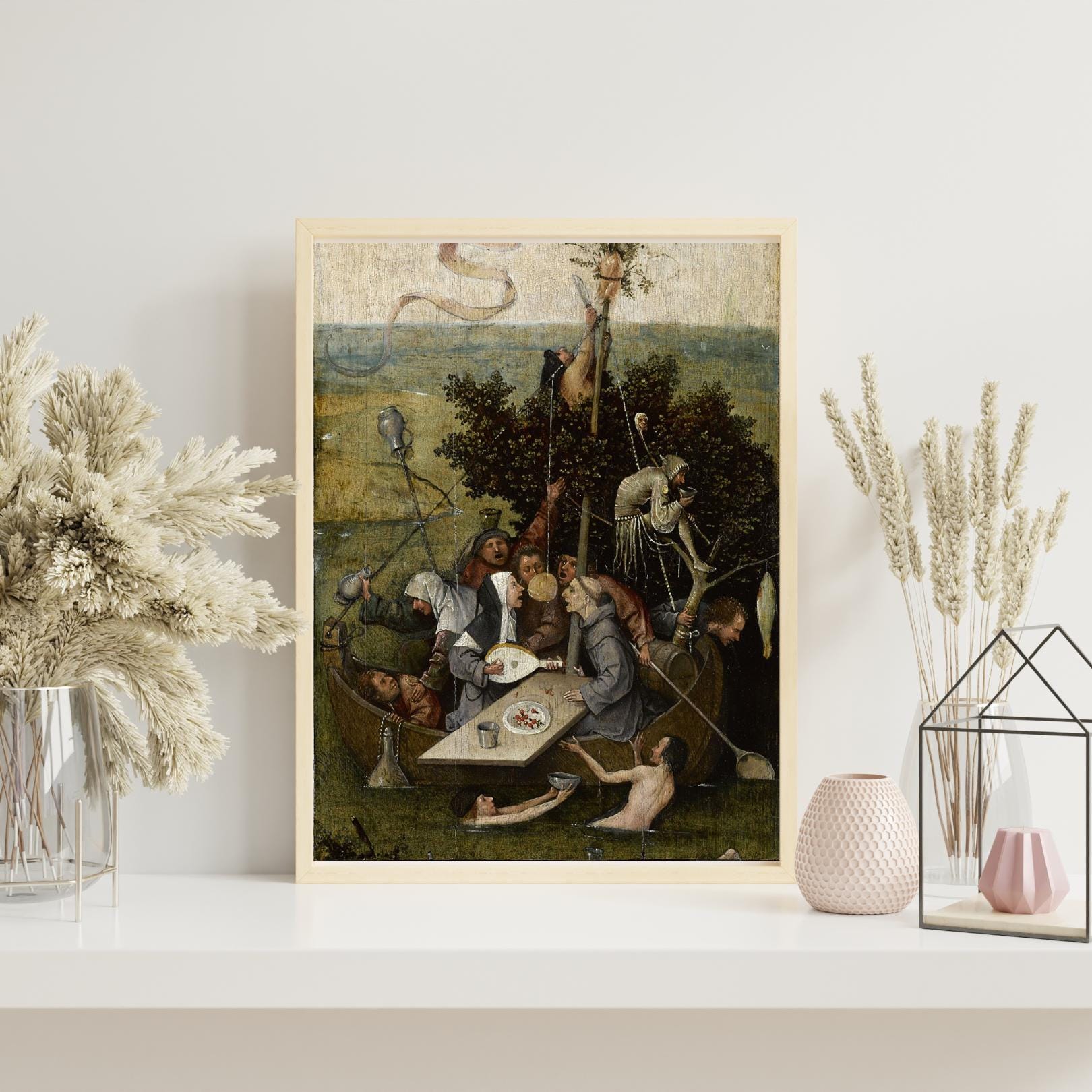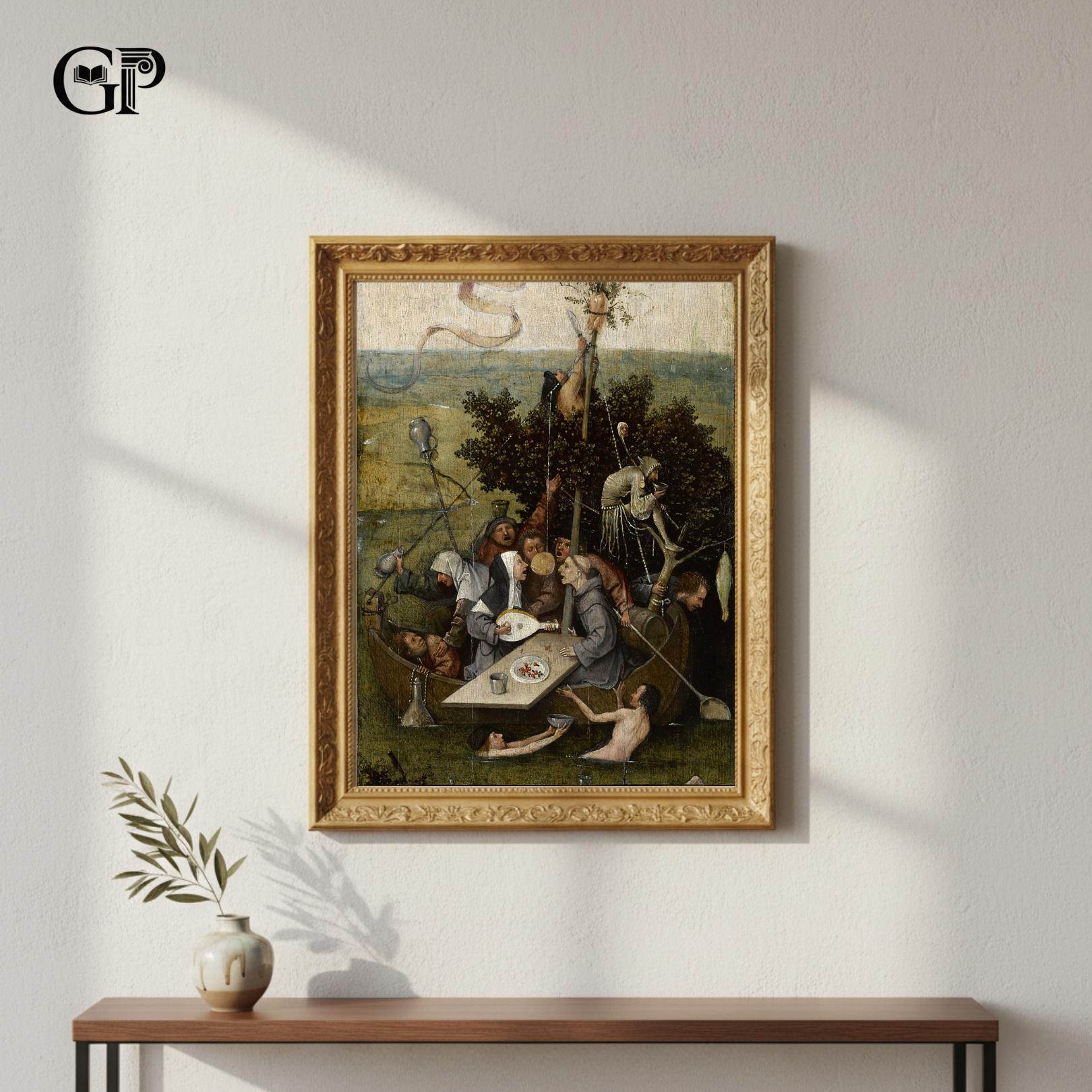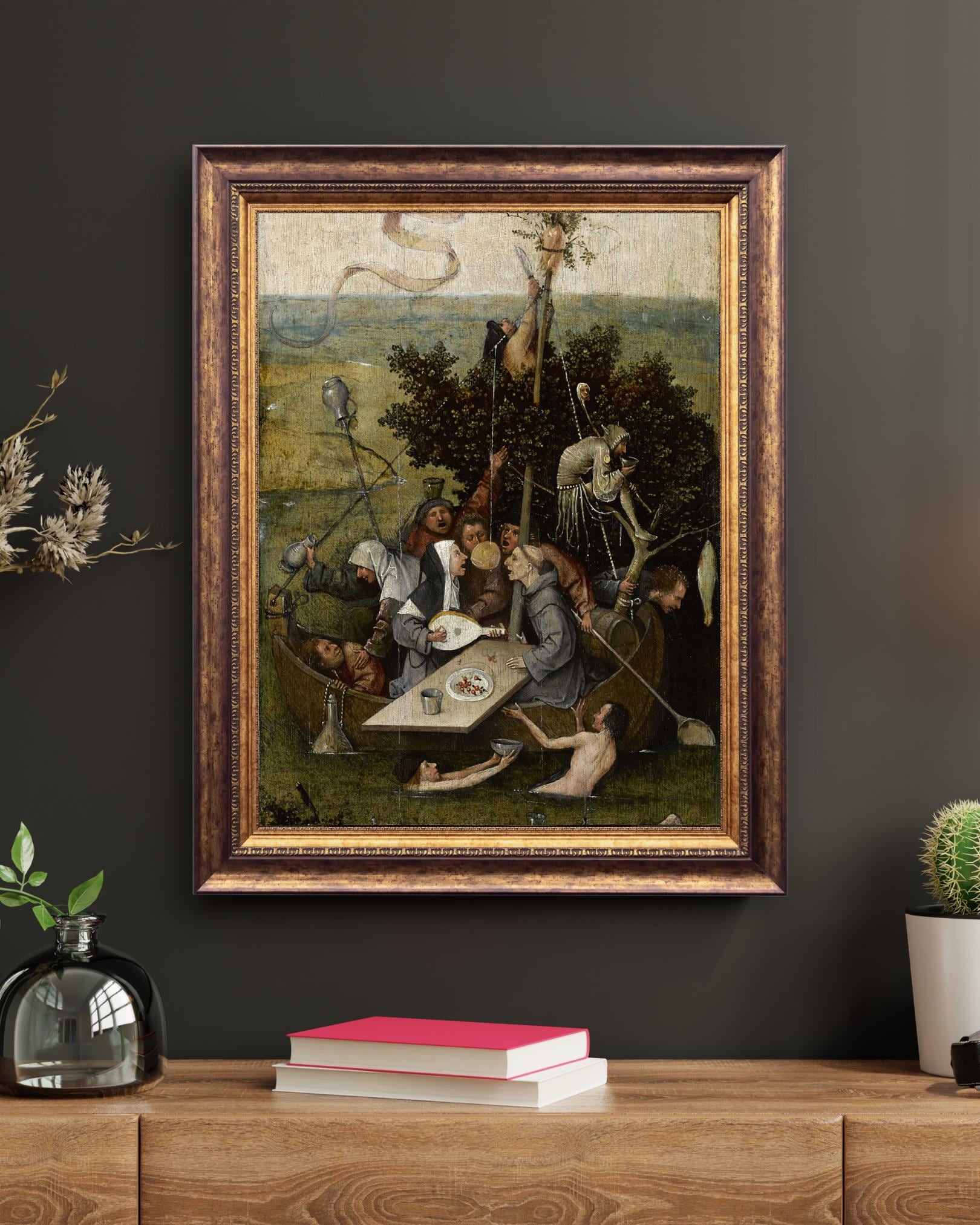 Bosch Ship of Fools Painting Print Ready to Hang, Northern Renaissance Allegory Dark Academia Wall Art Gift