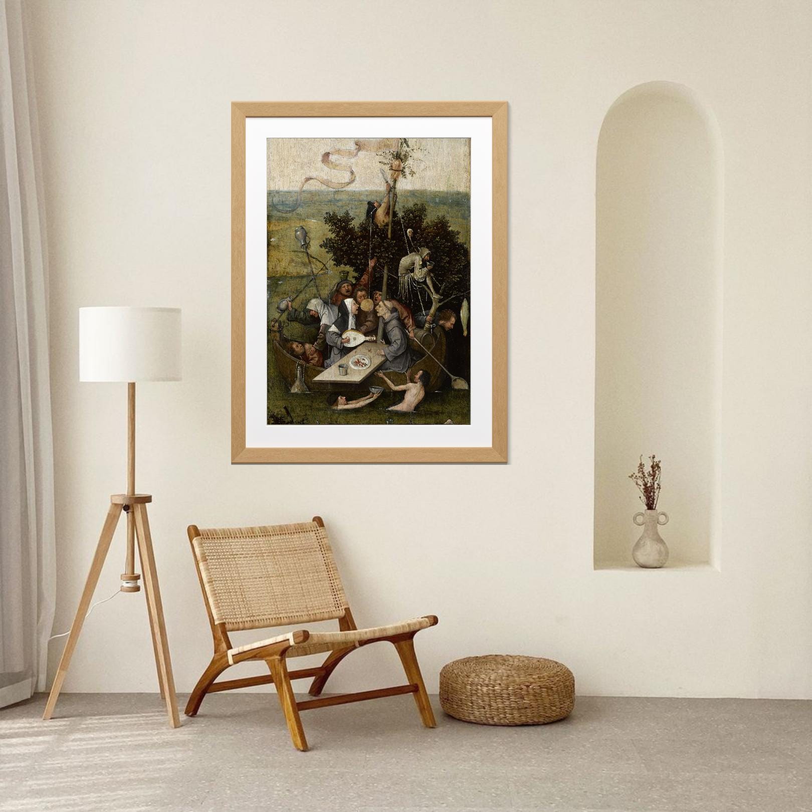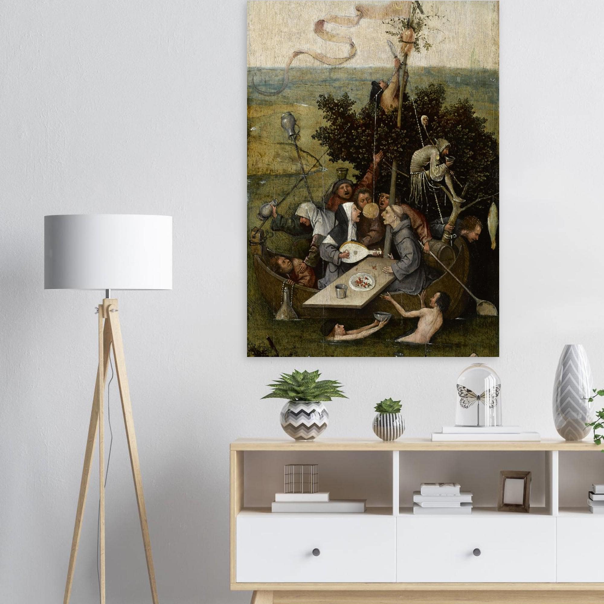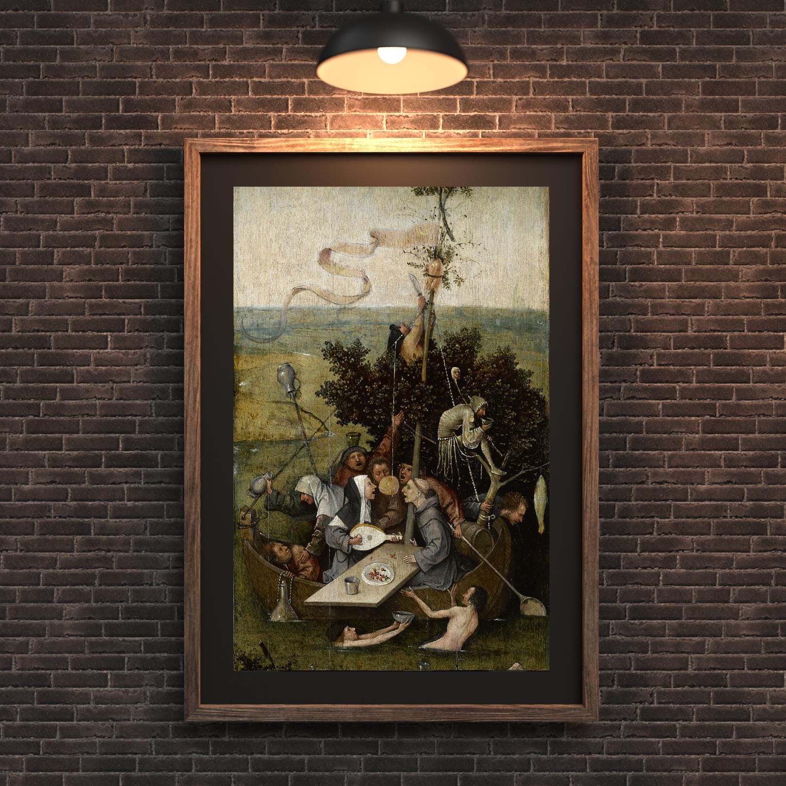 Bosch Ship of Fools Painting Print Ready to Hang, Northern Renaissance Allegory Dark Academia Wall Art Gift