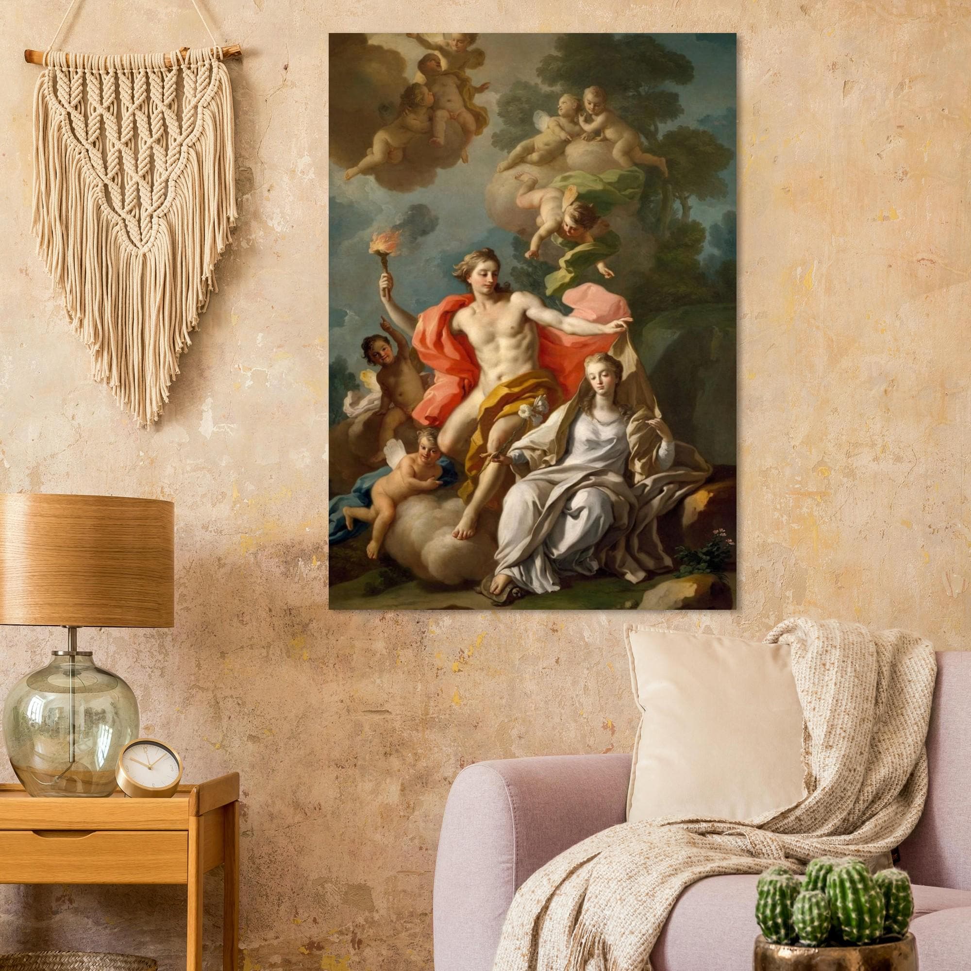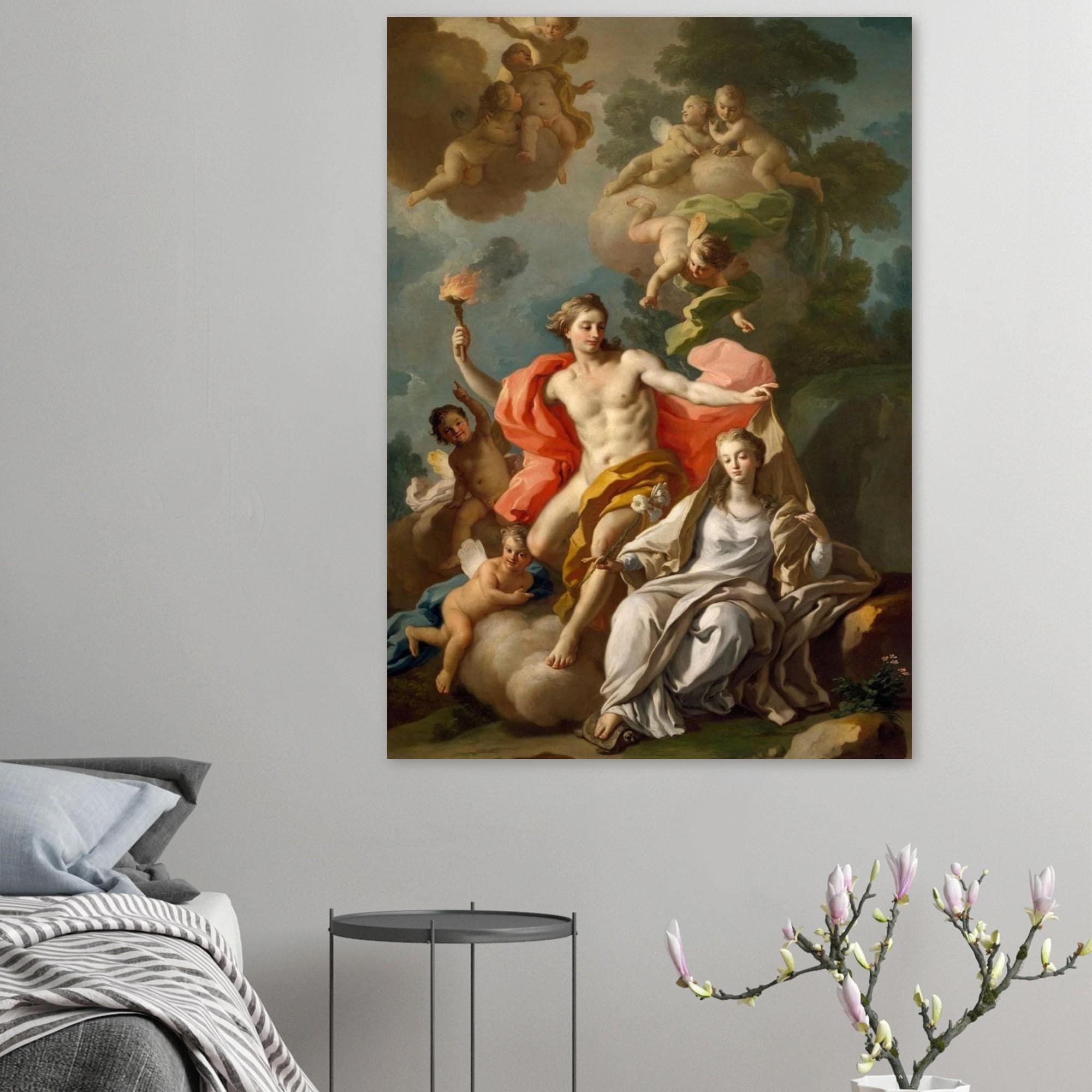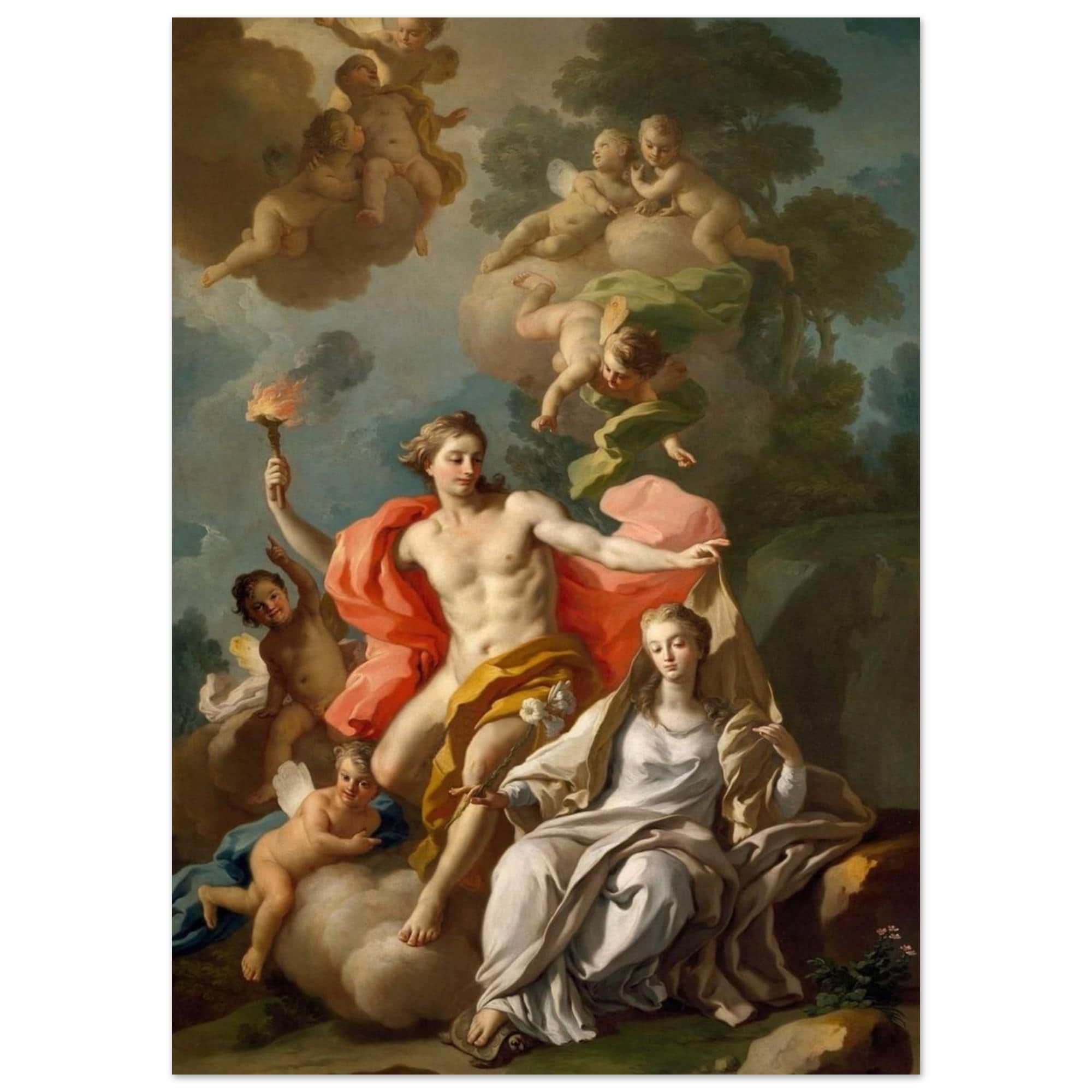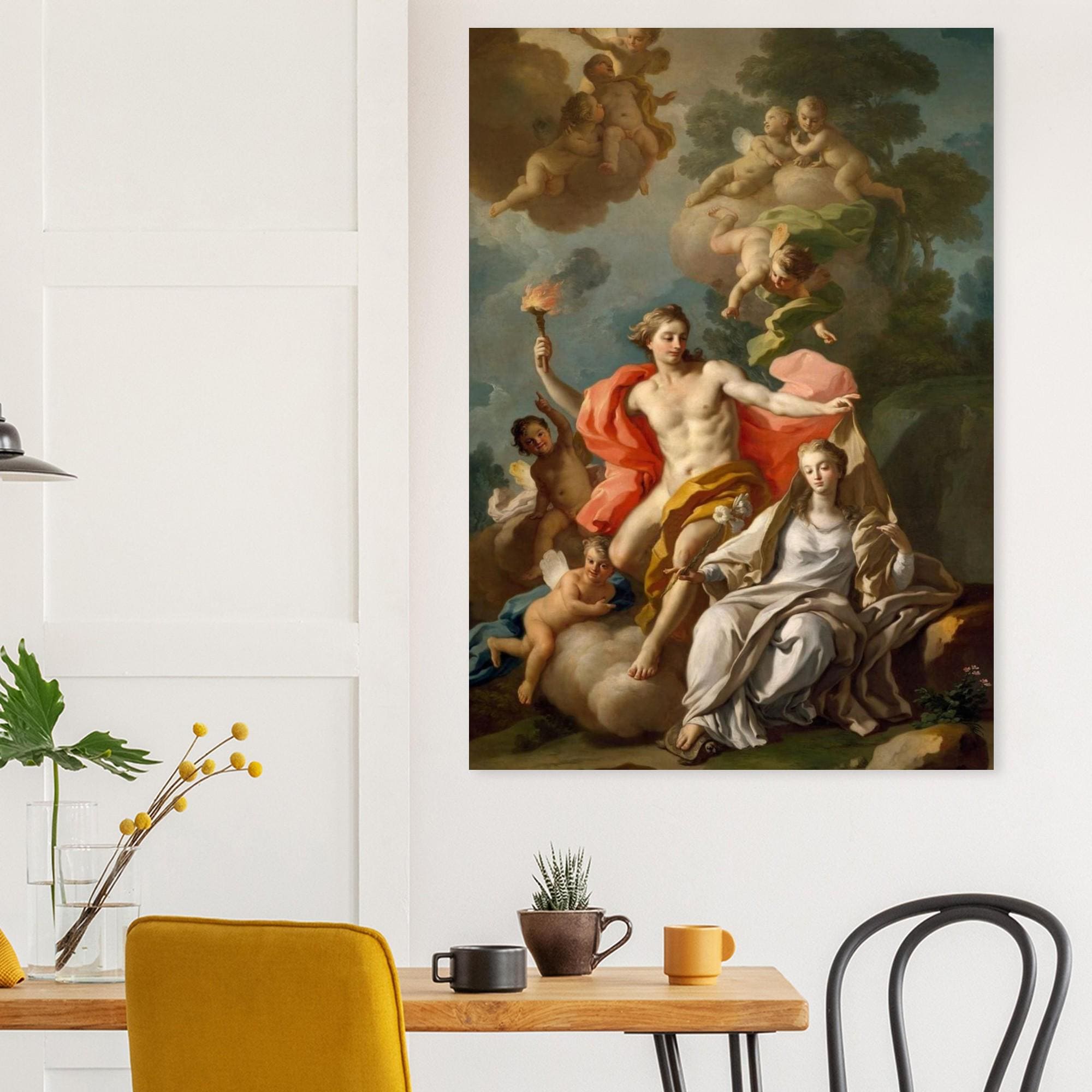 Push past common decor with this captivating Batoni Neoclassical Mythology Canvas Print. Evocative of the influential 18th-century master **Pompeo Batoni**, this painting captures idealized classical figures—a powerful male figure holding a torch and a serene female figure—surrounded by putti and clouds. The perfection of form and balanced composition are defining features of the **Neoclassical** era and **Academic Art**. Perfect for classicists, Grand Tour enthusiasts, and anyone seeking a sublime, museum-quality statement piece.