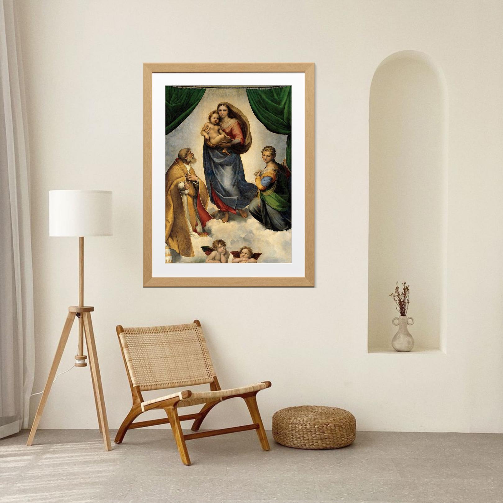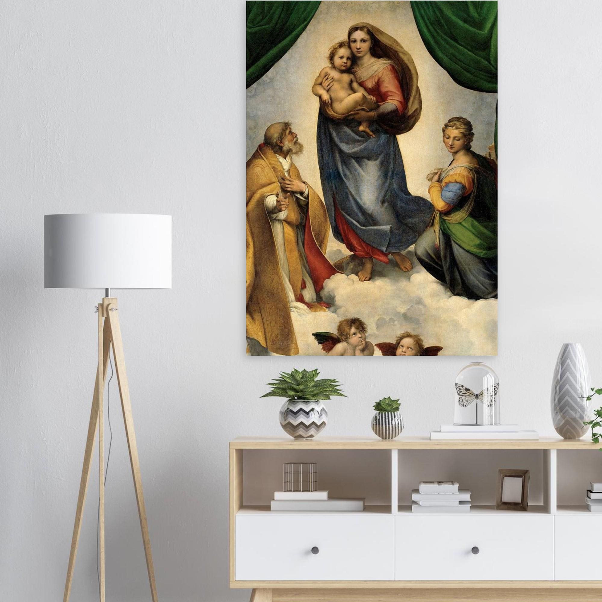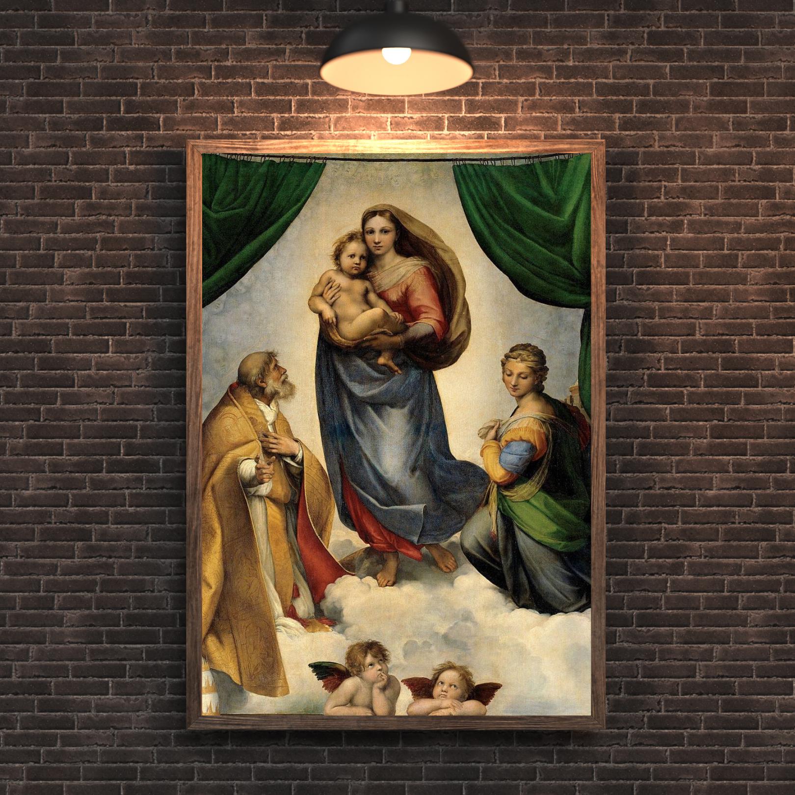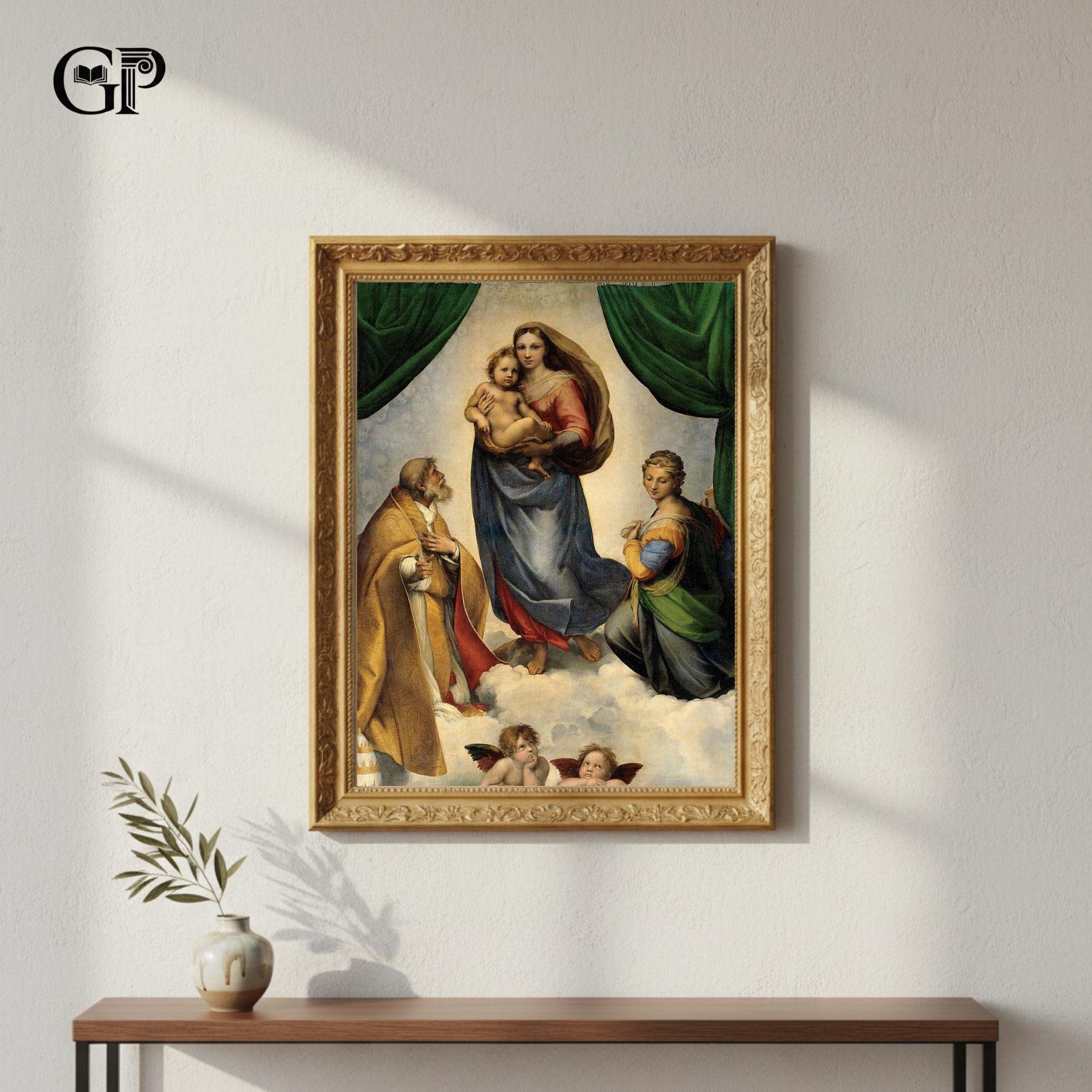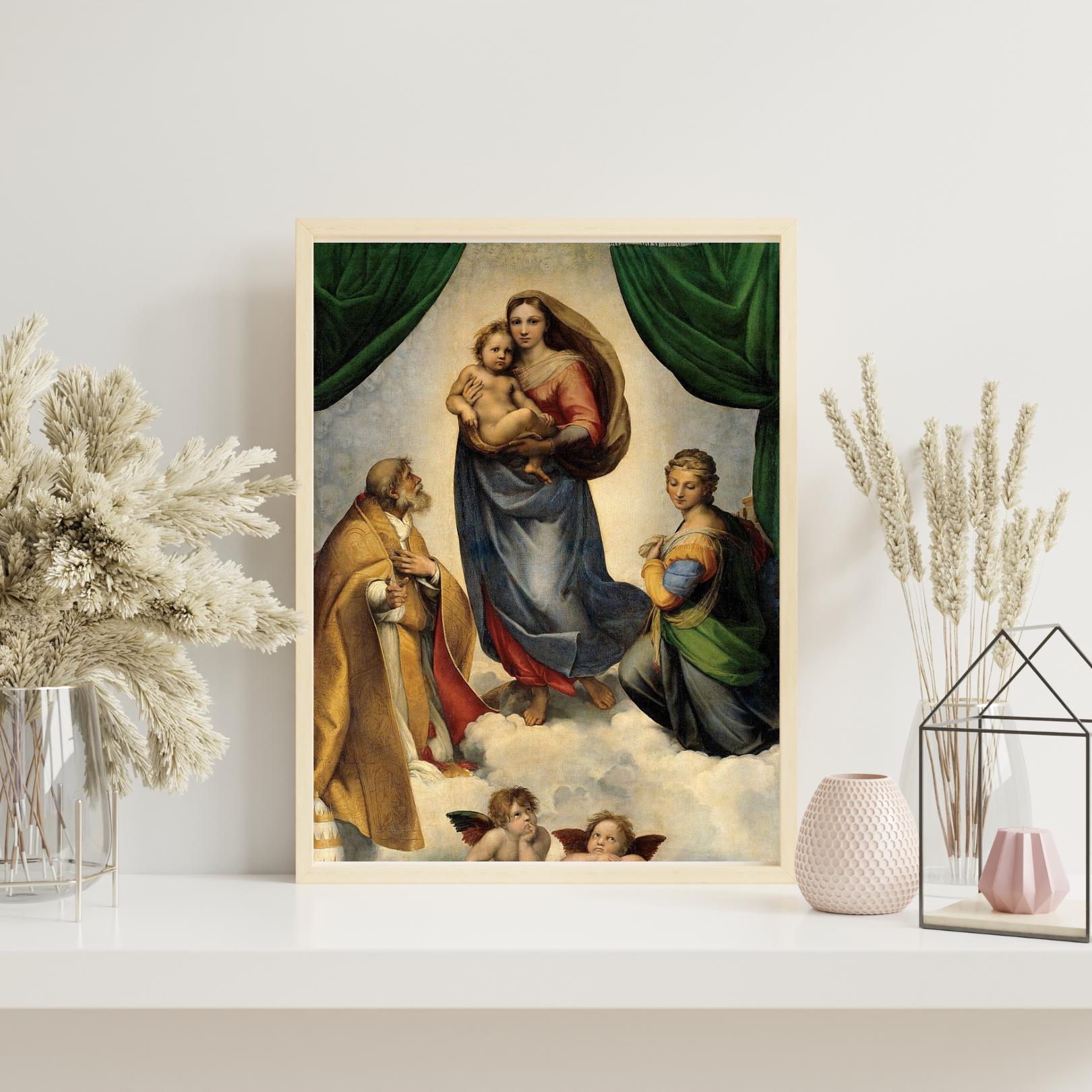 Push past common decor with this sublime Raphael's Sistine Madonna Canvas Print. This iconic **High Renaissance** masterpiece, painted by Raphael, captures the celestial vision of the Virgin Mary and the Christ Child descending upon clouds, flanked by Saint Sixtus and Saint Barbara, with the famous cherubs below. Perfect for collectors, spiritual art lovers, and those seeking a profound, museum-quality statement piece that embodies classical grace and Renaissance harmony.