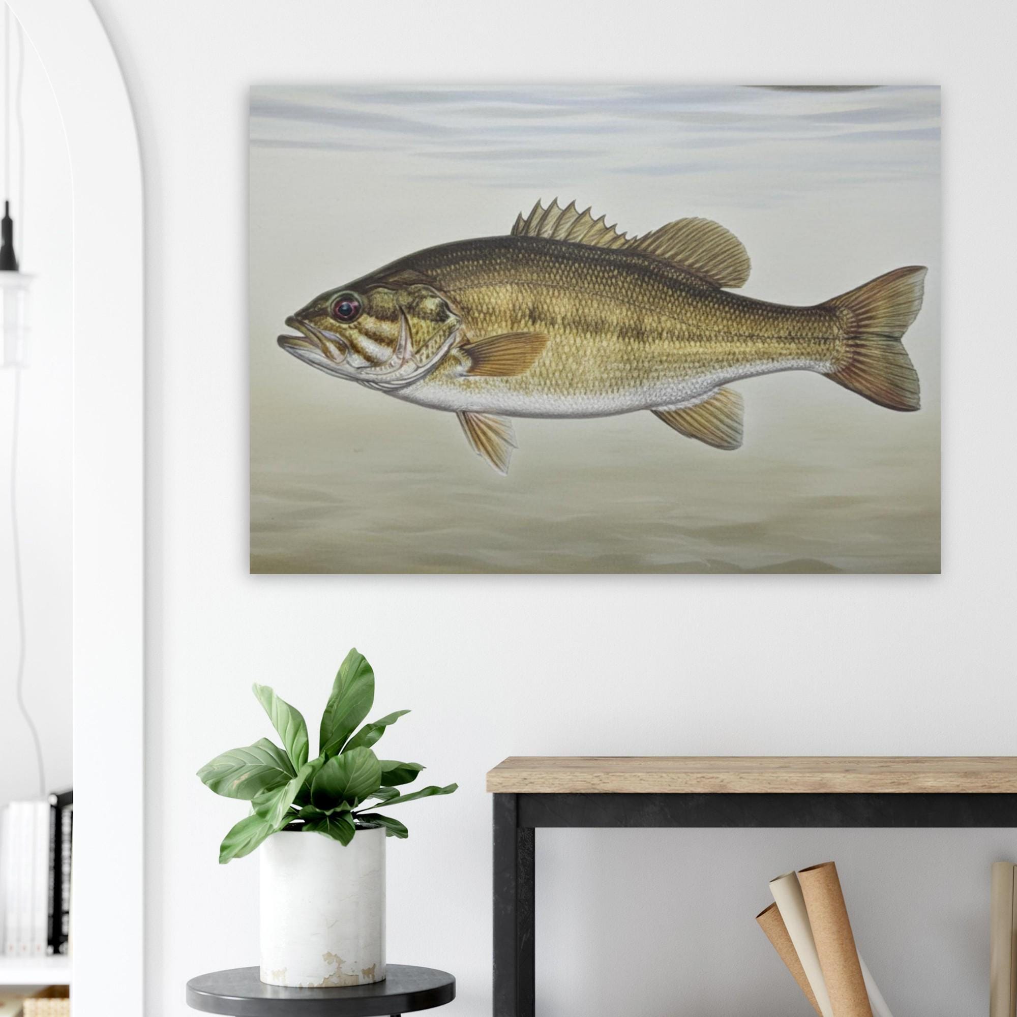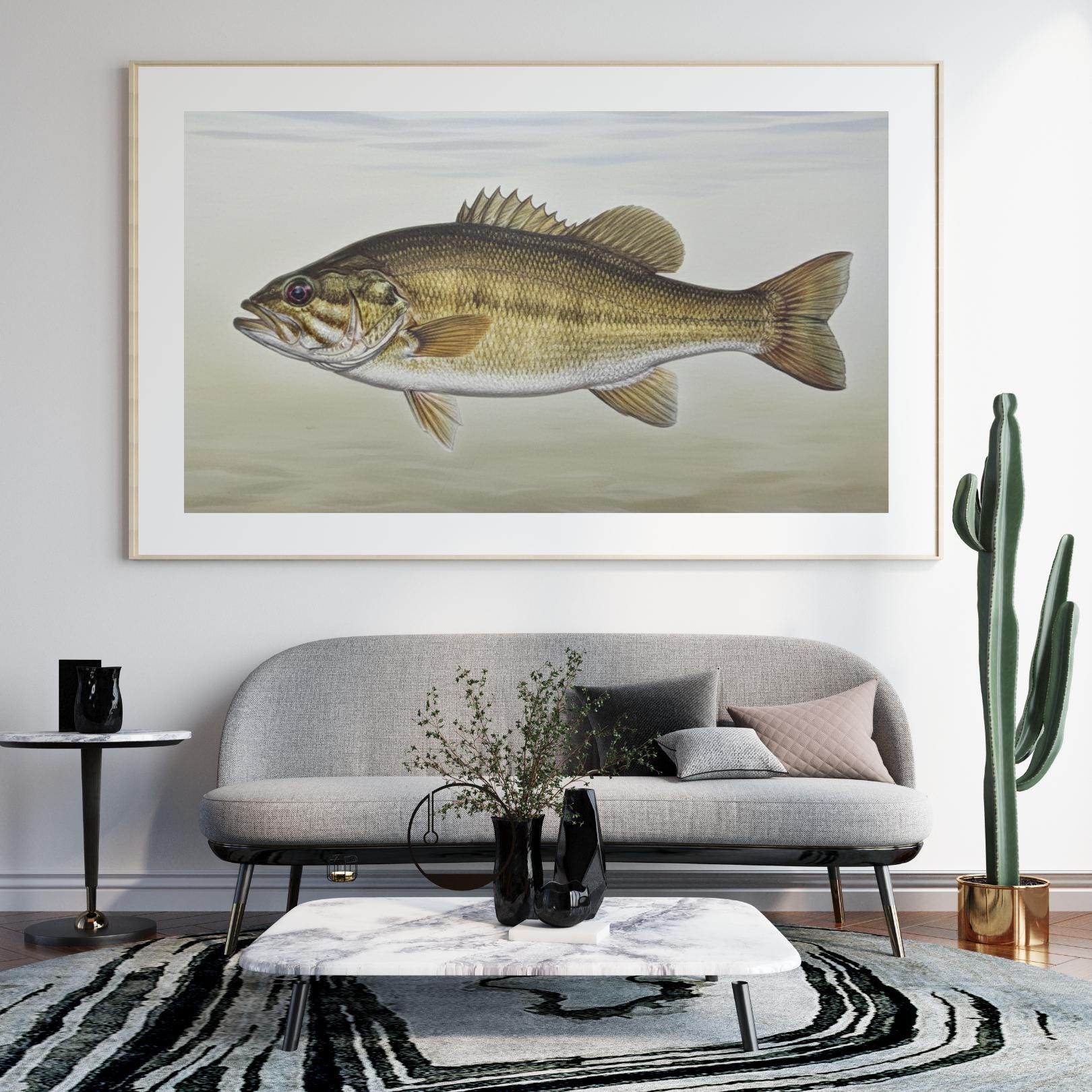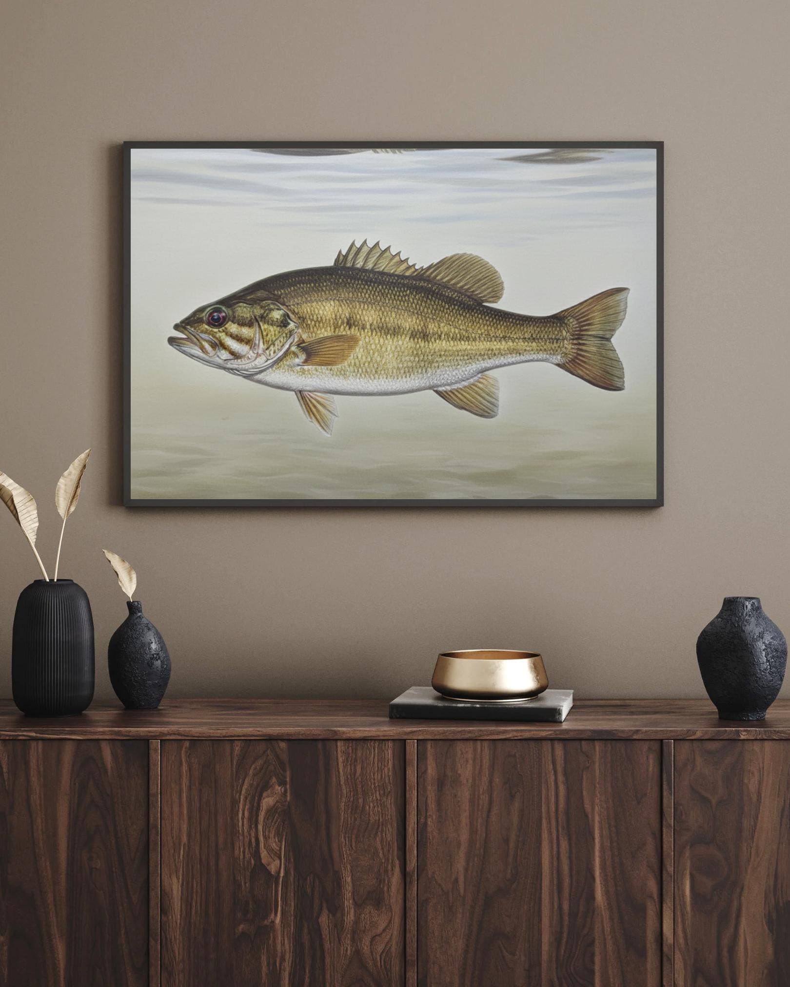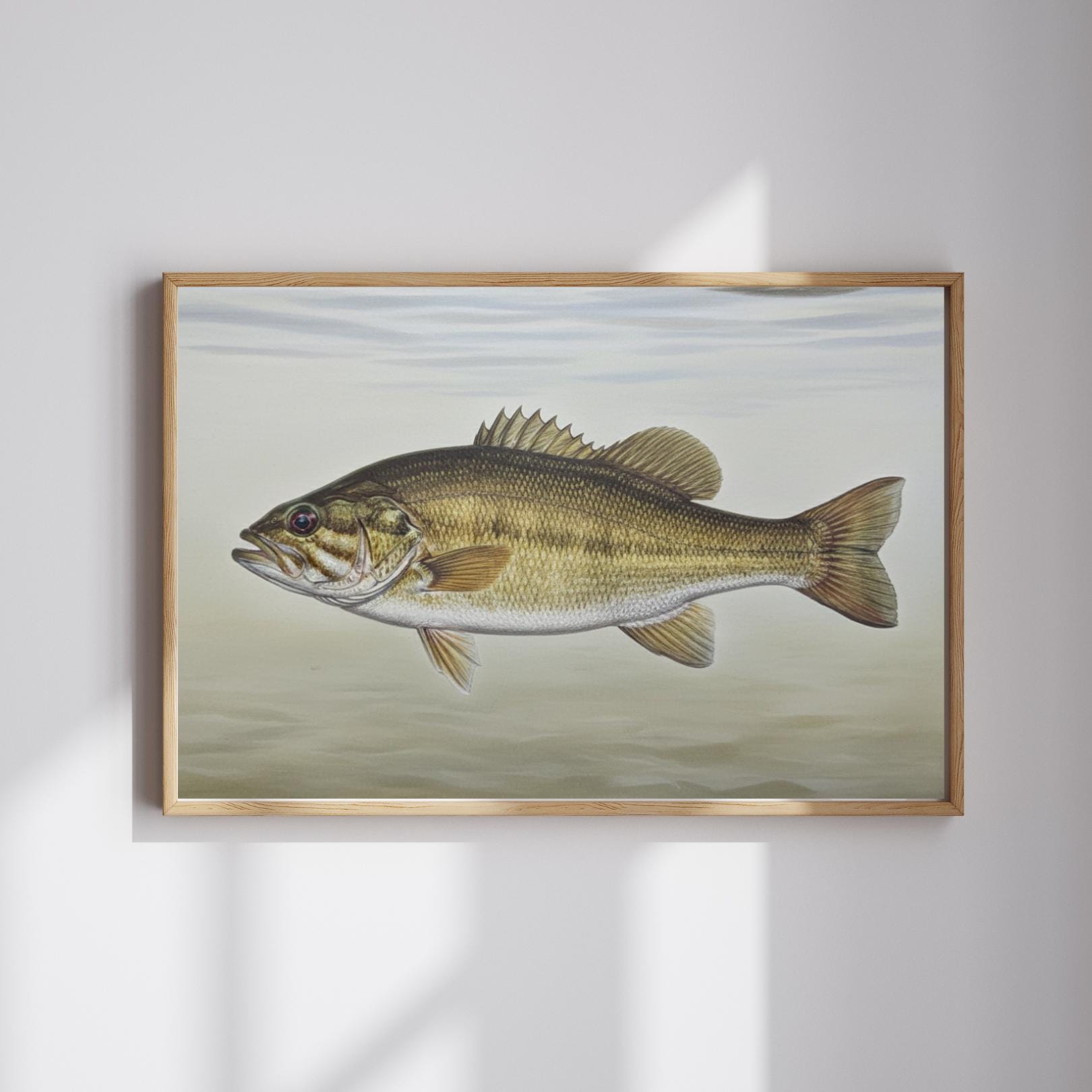 Vintage Bass Oil Painting | Antique Fishing Artwork | Lake House Fish Wall Decor | Mailed Print