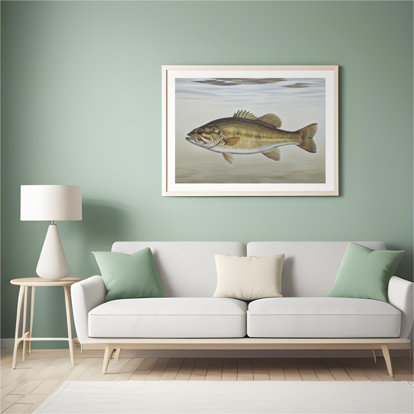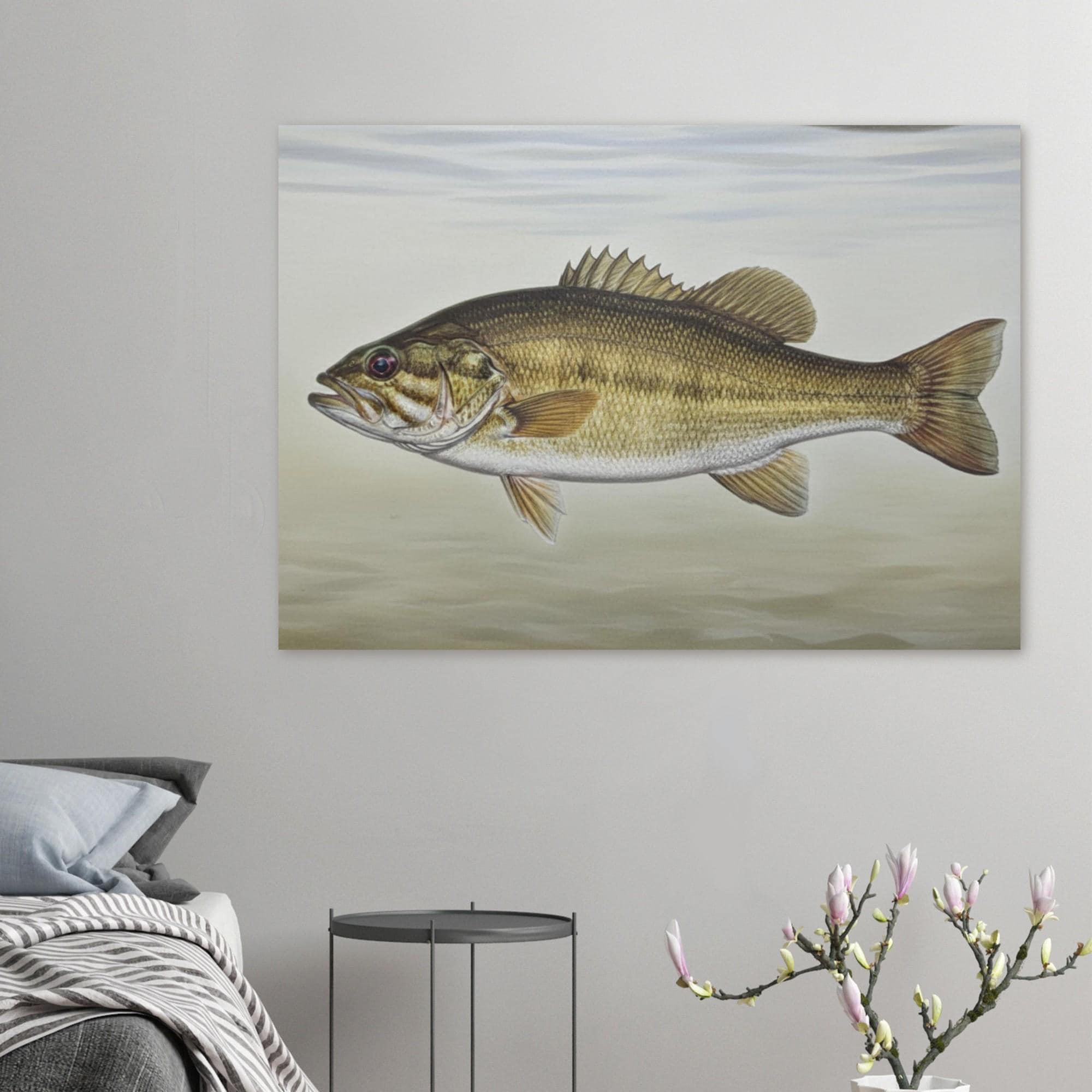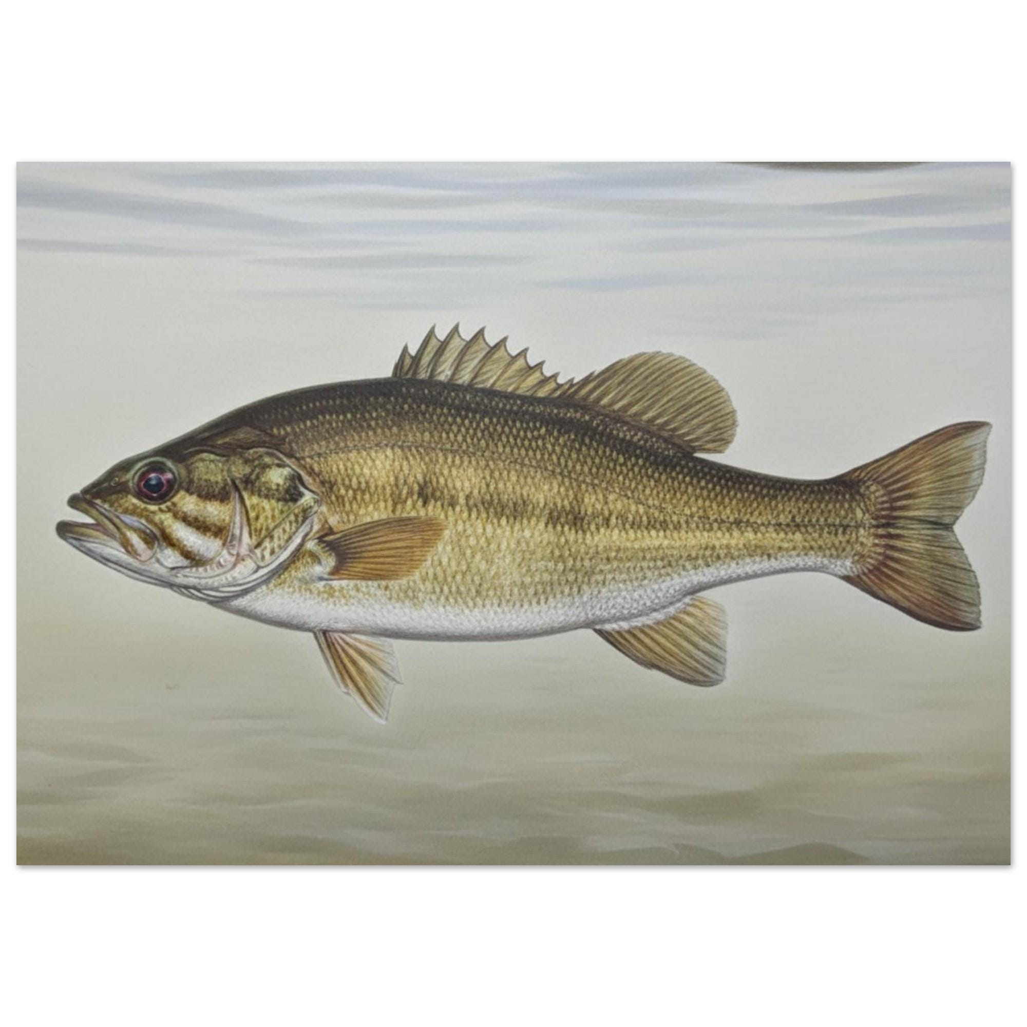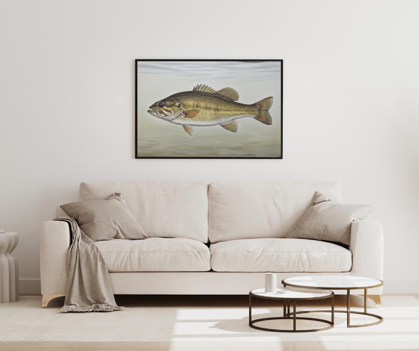 Vintage Bass Oil Painting | Antique Fishing Artwork | Lake House Fish Wall Decor | Mailed Print