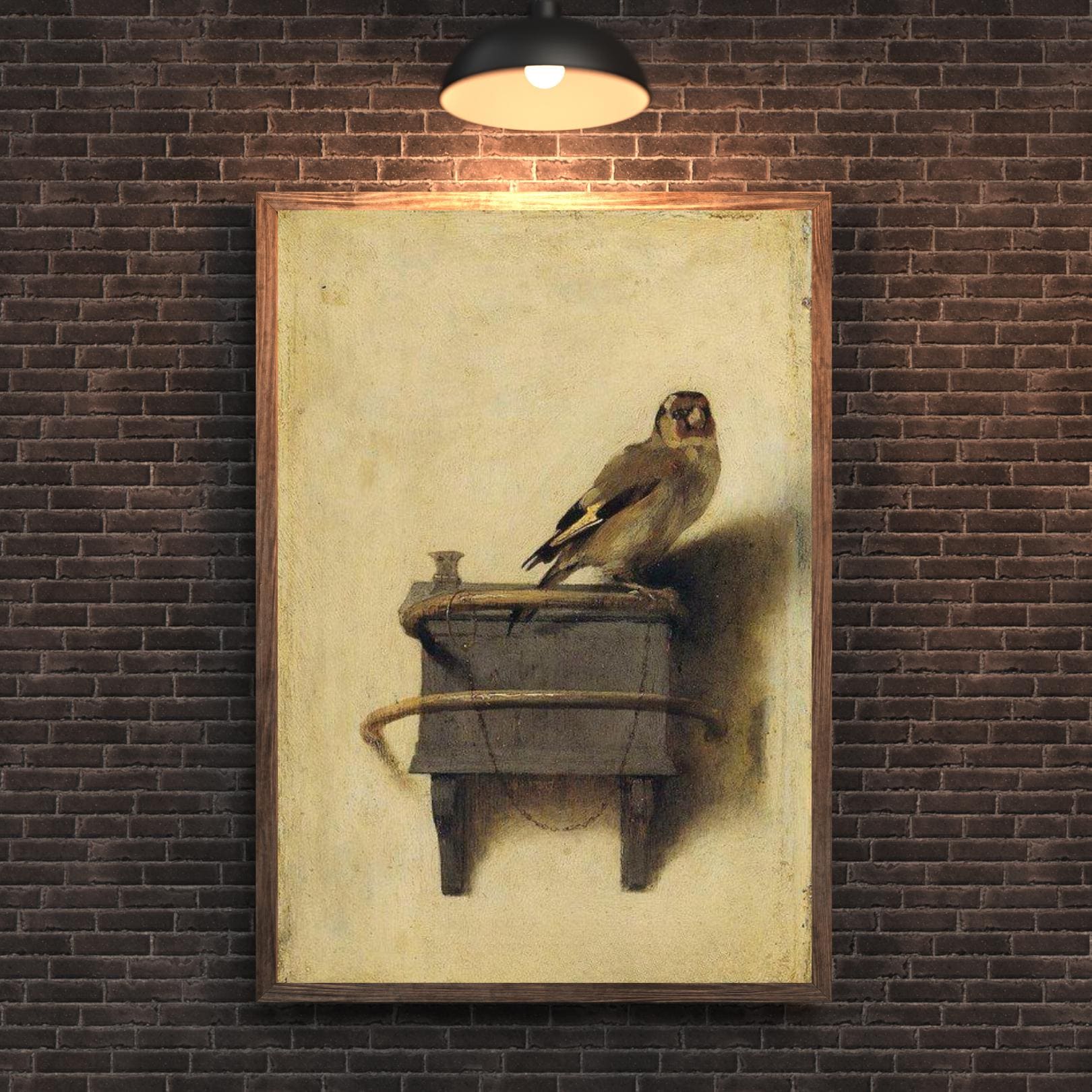 Push past common decor with this charming **Antique Goldfinch Bird Painting Canvas Print**. This unique 17th-century masterpiece captures a single goldfinch perched on a simple ledge, rendered with striking detail and light. The simplicity of the subject and its historical charm make this bird portrait perfect for adding an authentic **Farmhouse Country** or **Cottagecore** aesthetic to cozy spaces like a laundry room, kitchen, or living area.